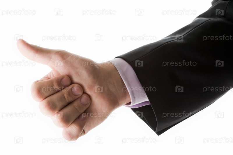 Рука бизнесмена, показывающего знак О\'кей, на белом фоне