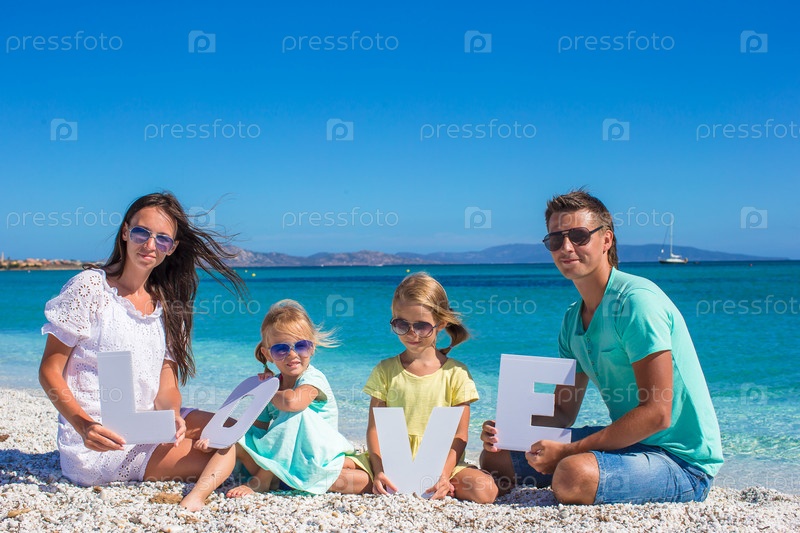 Молодая красивая семья на пляже