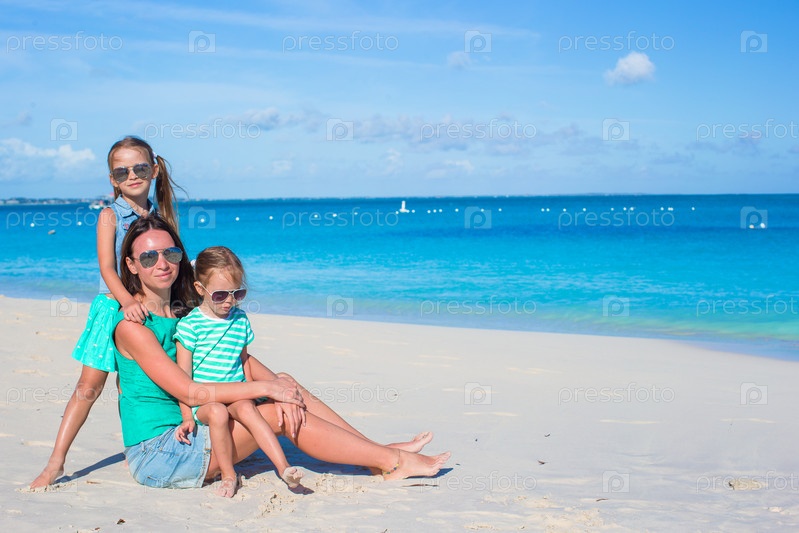 Мать с дочерьми на пляже