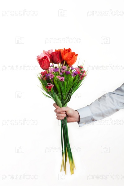 Букет в руке на белом фоне