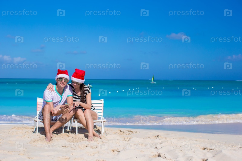 Молодая пара встречает Рождество на пляже