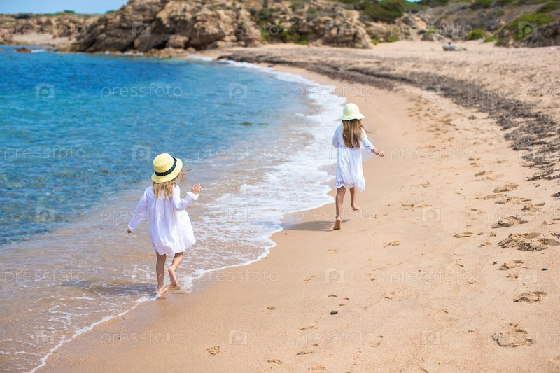Маленькие сестренки бегут по пляжу
