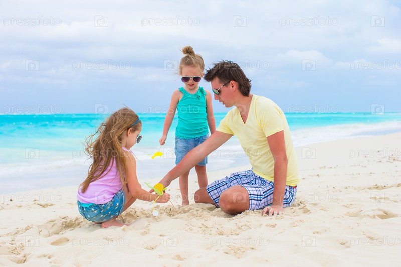 Отец с дочерьми на пляже