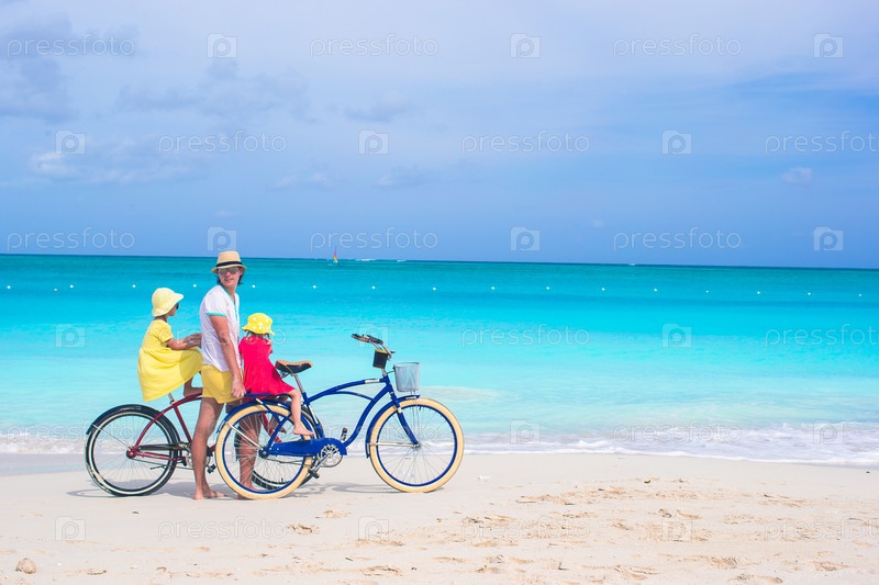Отец с дочерьми на пляже
