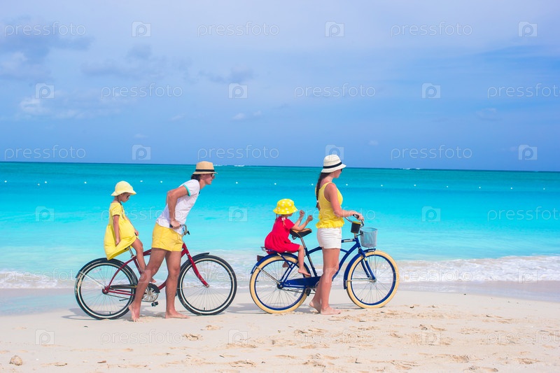 Семья с велосипедами на пляже
