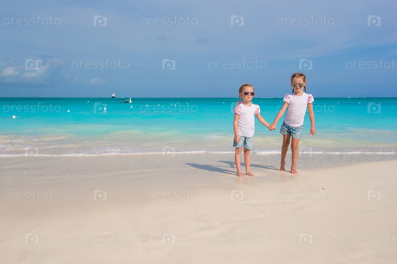 Маленькие милые девочки на пляже