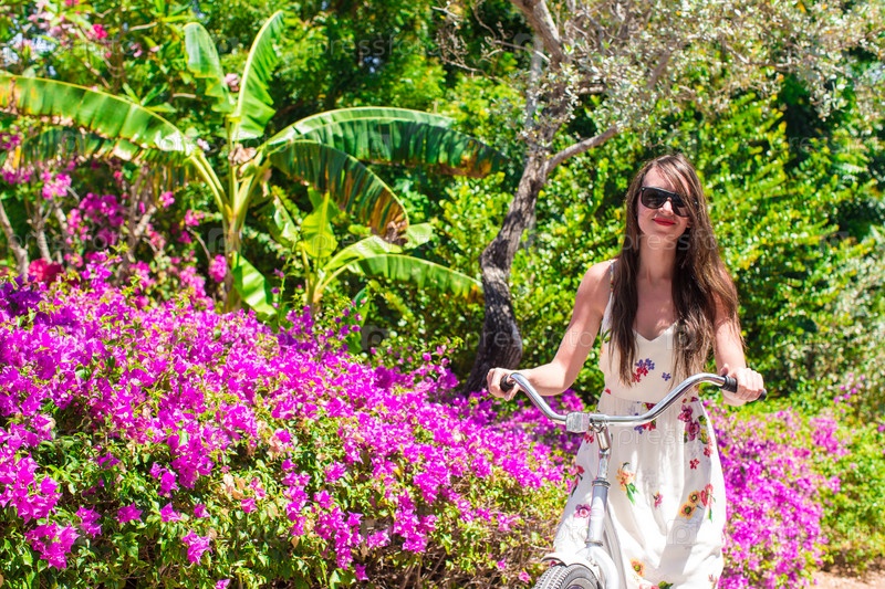 Молодая женщина с велосипедом
