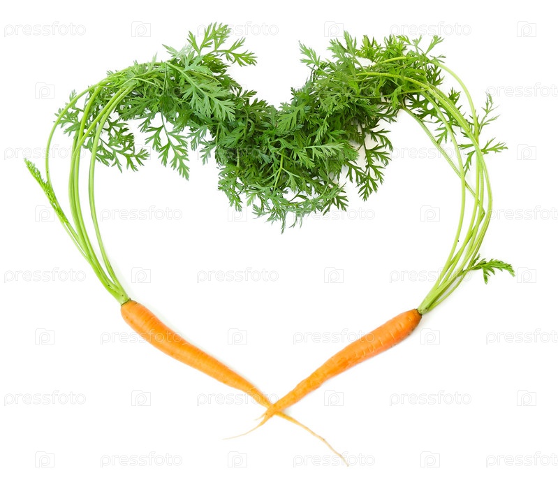 Две моркови в виде сердца на белом фоне