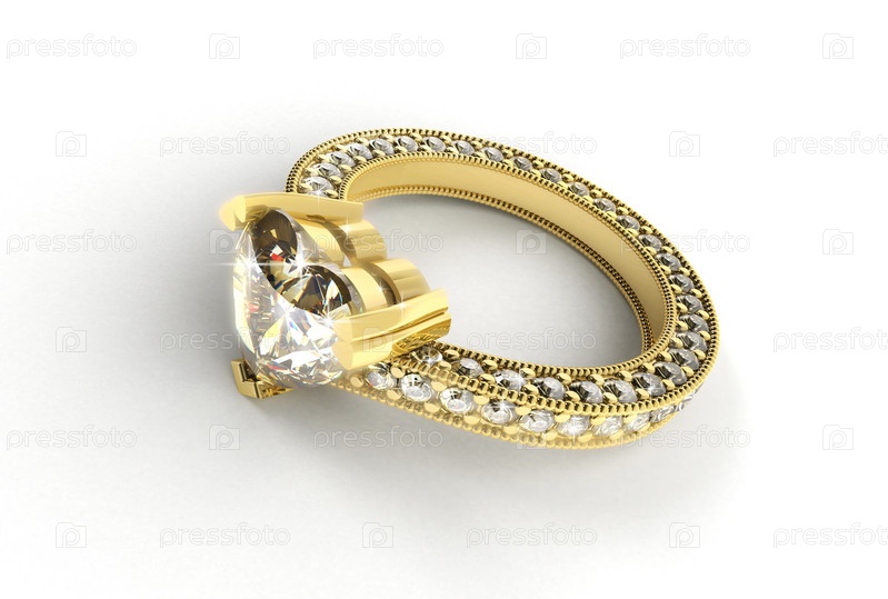Золотое кольцо с бриллиантами на светлом фоне