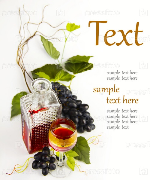 Бокал вина и виноград, шаблон