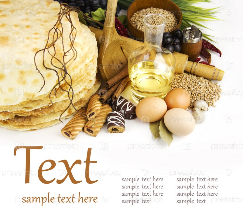 Ингредиенты для приготовления пищи на белом фоне, шаблон