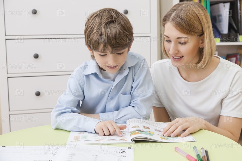Мать помогает сыну заниматься