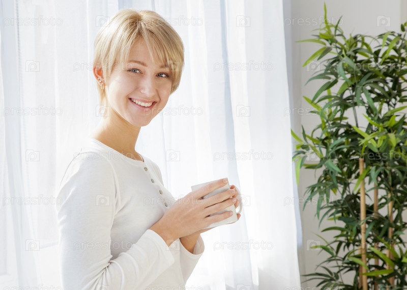 Красивая девушка с чашечкой кофе