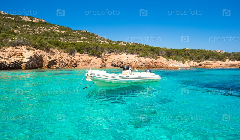Маленькая лодка в бирюзовом чистом море