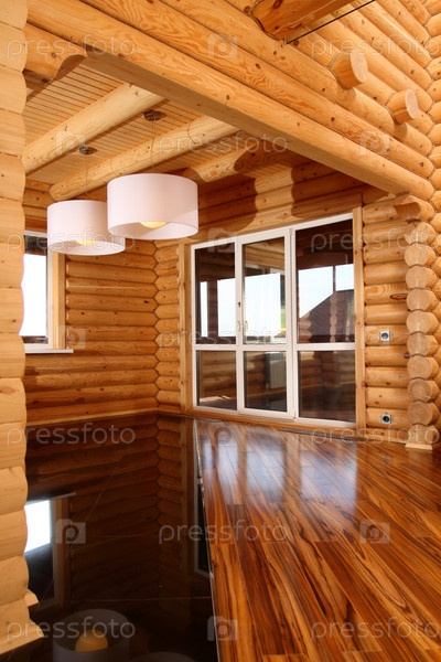 Просторная гостиная в деревянном доме, выполненная в стиле хай-тек