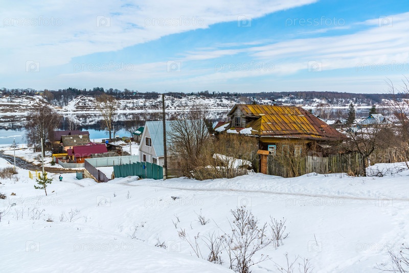 Небольшая деревня на берегах реки Волги, Россия