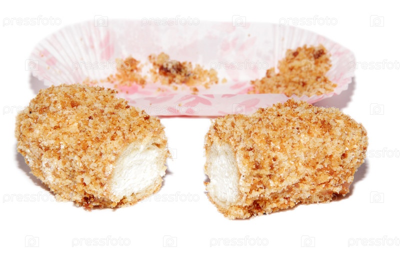 Аппетитный эклер с вкусным кремом на белом фоне