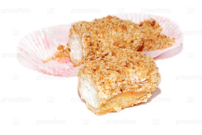 Аппетитный эклер с вкусным кремом на белом фоне