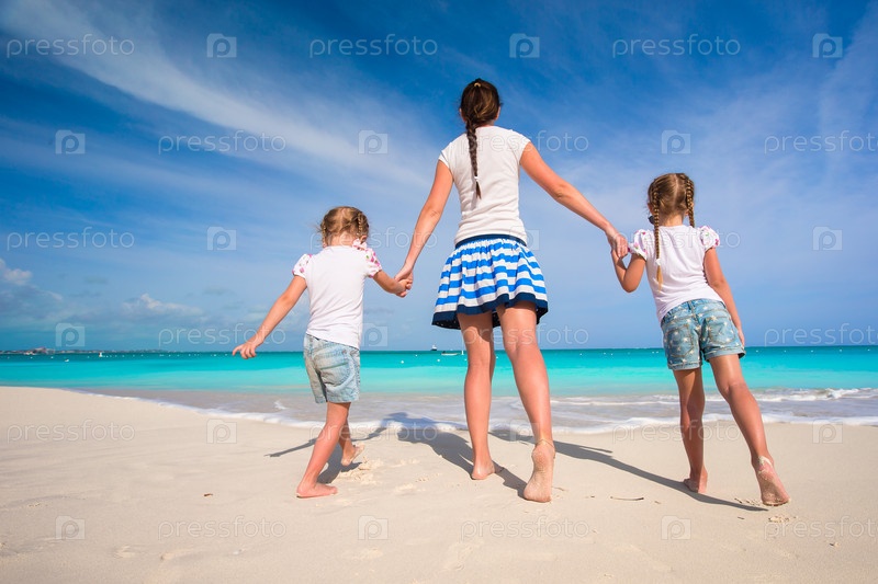 Мать с дочерьми на пляже