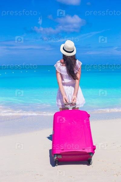 Девушка с багажом на пляже