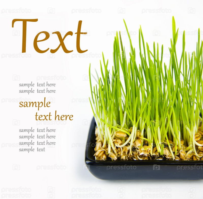 Пророщенные зеленые всходы из зерен с образцом для текста