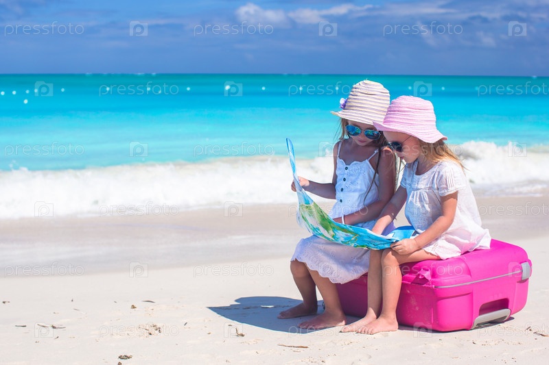 Девочки с картой на пляже