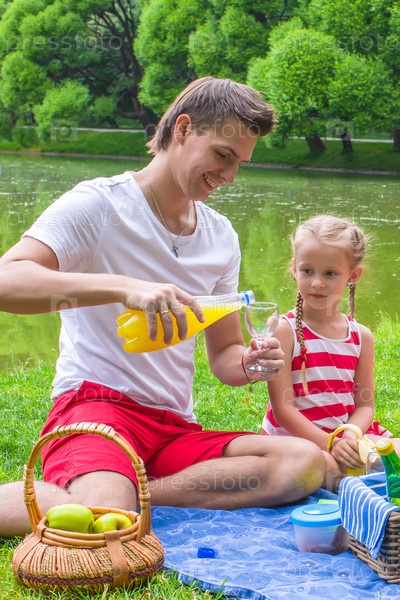 Молодой отец и маленькая дочь на пикнике