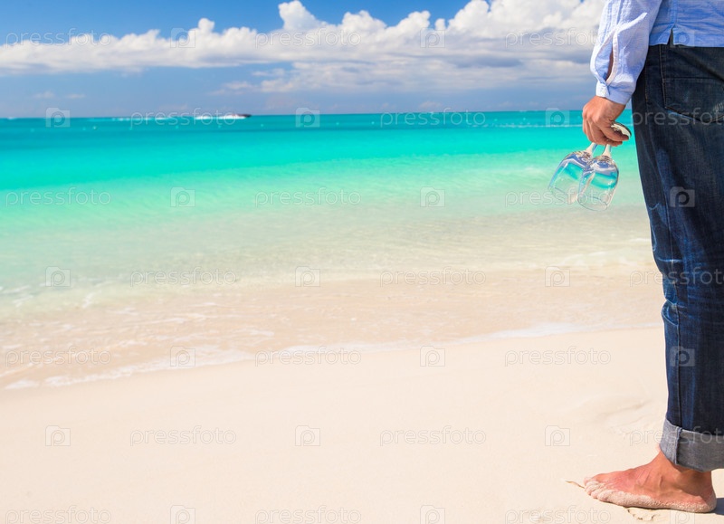 Мужчина с бокалами на пляже