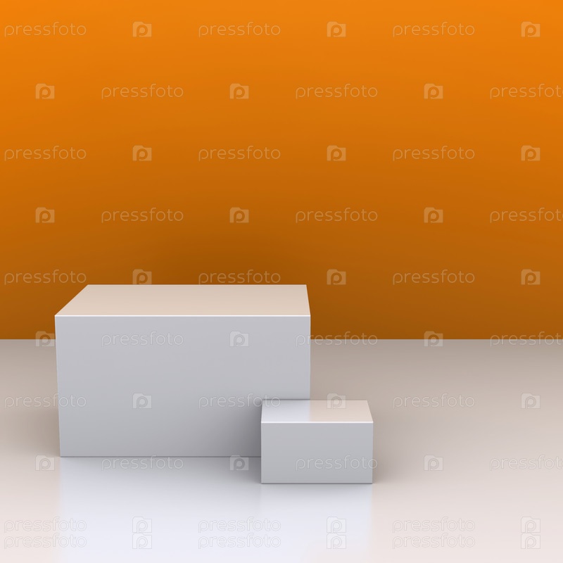 Белые коробки на фоне оранжевой стены. 3D визуализация