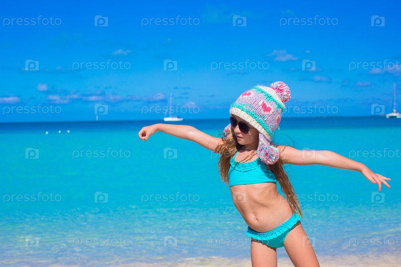 Девочка в зимней шапке на пляже