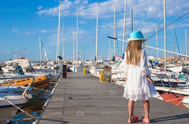 Очаровательная маленькая девочка веселиться в порту