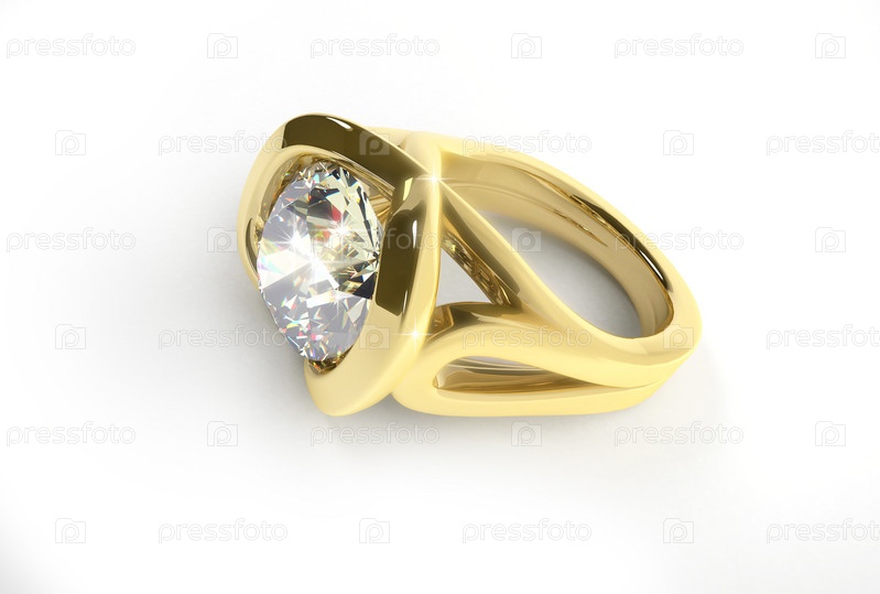 Золотое кольцо с бриллиантами на белом фоне