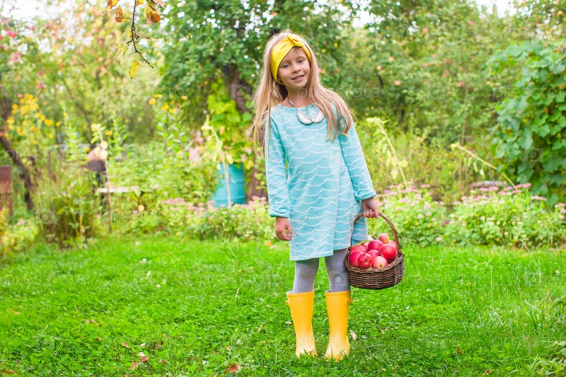 Маленькая девочка с корзиной яблок
