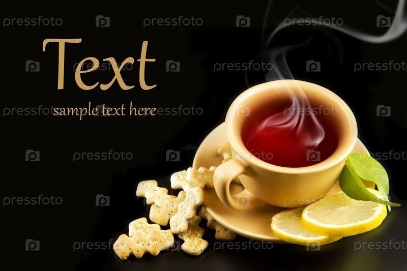 Чашка чая с лимоном и крекеры
