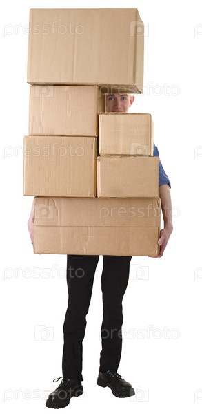 Мужчина держит картонные коробки на белом