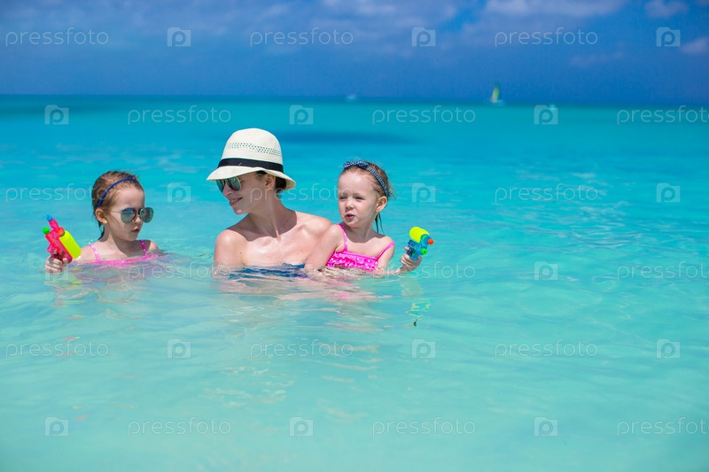 Мать с детьми на море