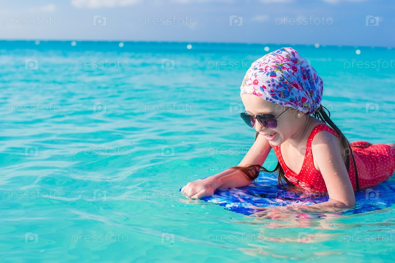 Милая девочка плавает в море