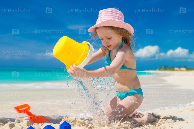 Милая девочка играет на пляже
