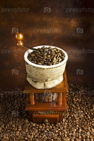Ручная кофемолка с зернами кофе