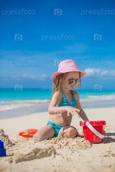 Маленькая девочка играет на пляже