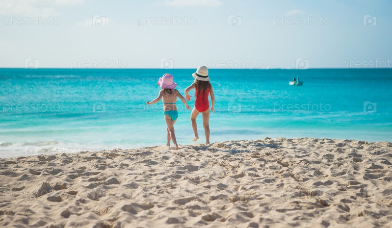 Маленькие милые девочки на пляже