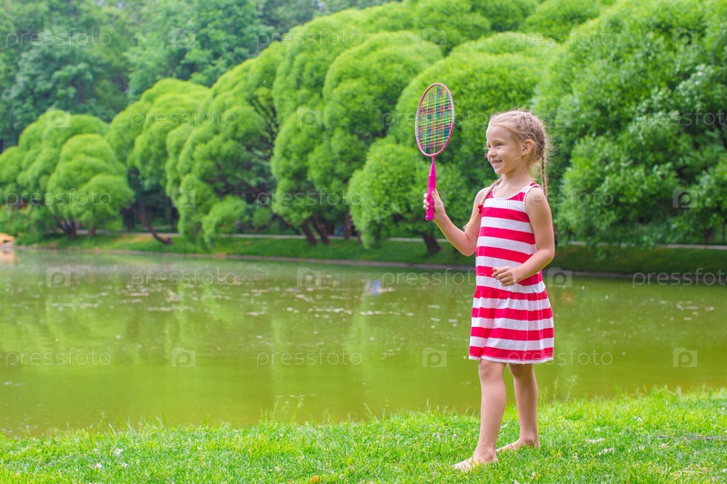 Девочка играет в бадминтон