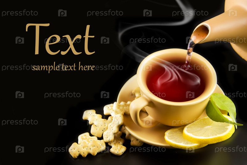 Чашка чая с лимоном и крекеры