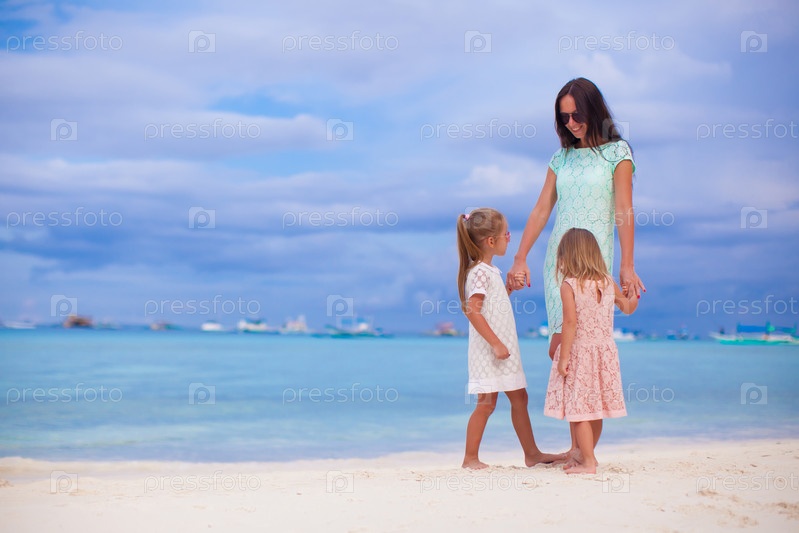 Мать с детьми на пляже