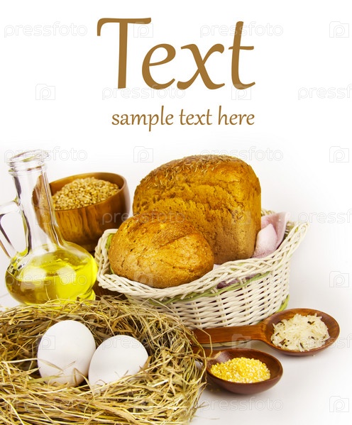 Свежие продукты на белом фоне с образцом текста