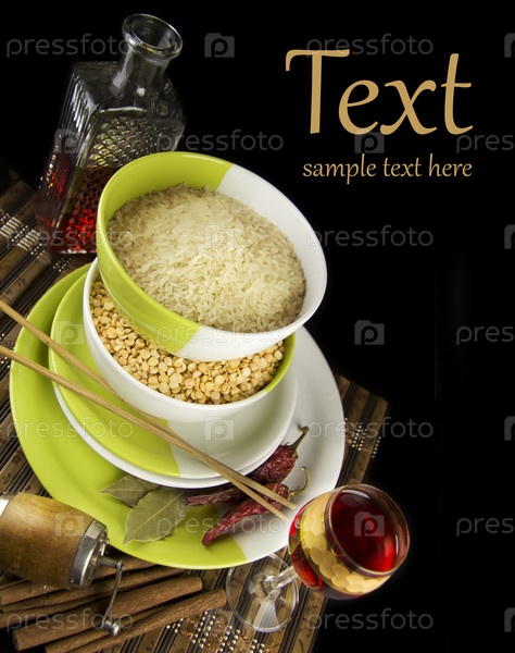 Ингредиенты для приготовления пищи на черном фоне с образцом текста