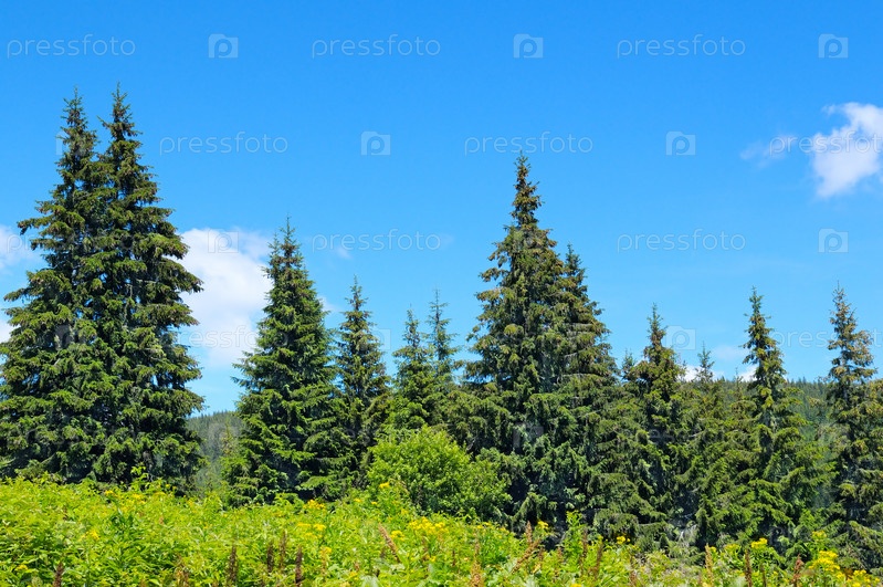 Еловый лес на холме
