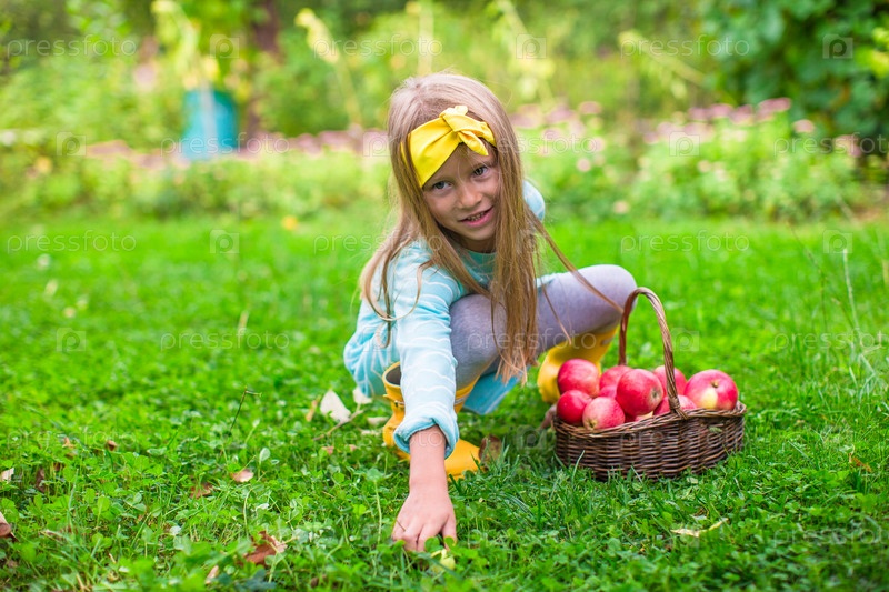 Девочка с корзиной яблок