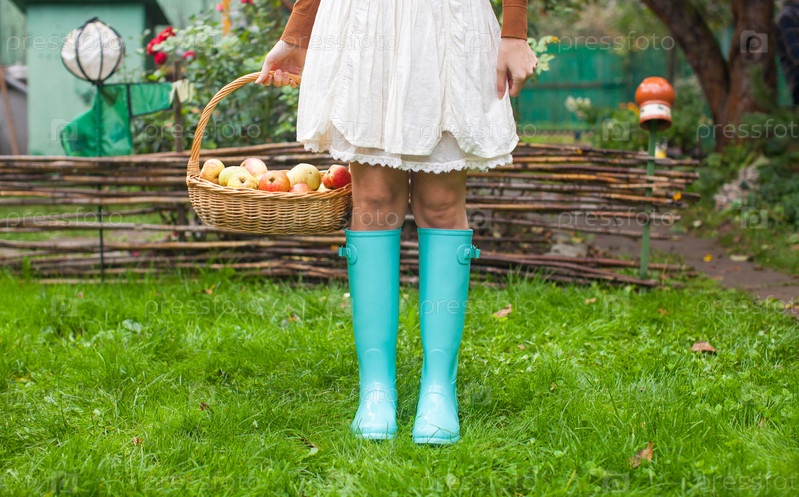 Девушка с корзиной яблок