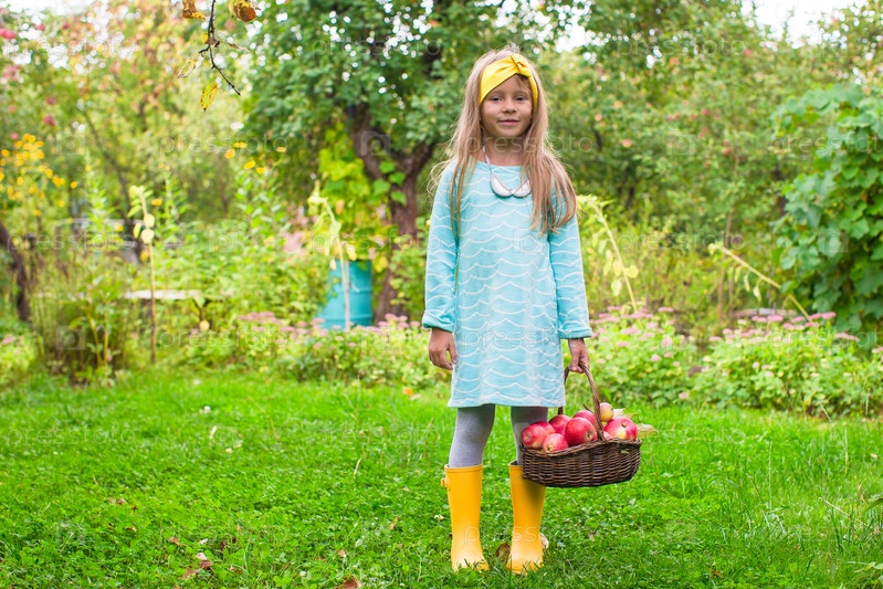 Девочка с корзиной яблок